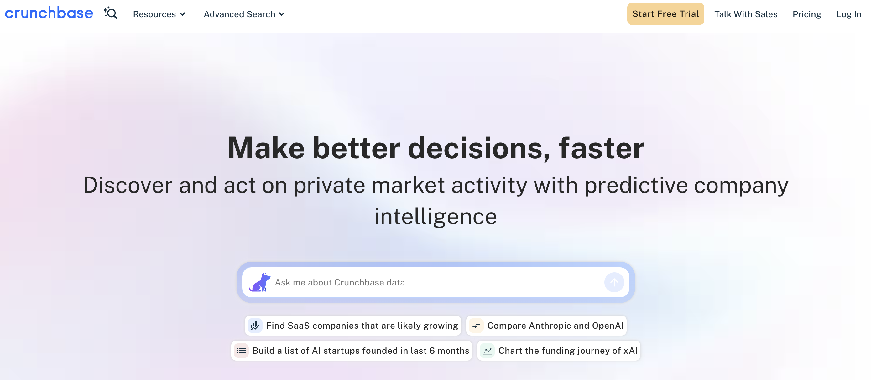 Best for: Investment teams that need market analytics and trend intelligence alongside company data. Not ideal for teams looking for affordable API-first data infrastructure.
