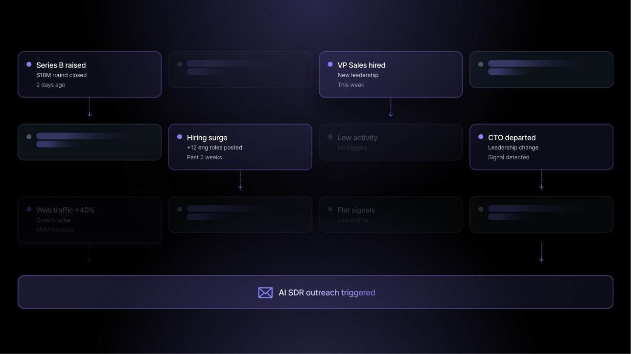 Signal-driven prioritization based on hiring activity, leadership changes, and expansion indicators