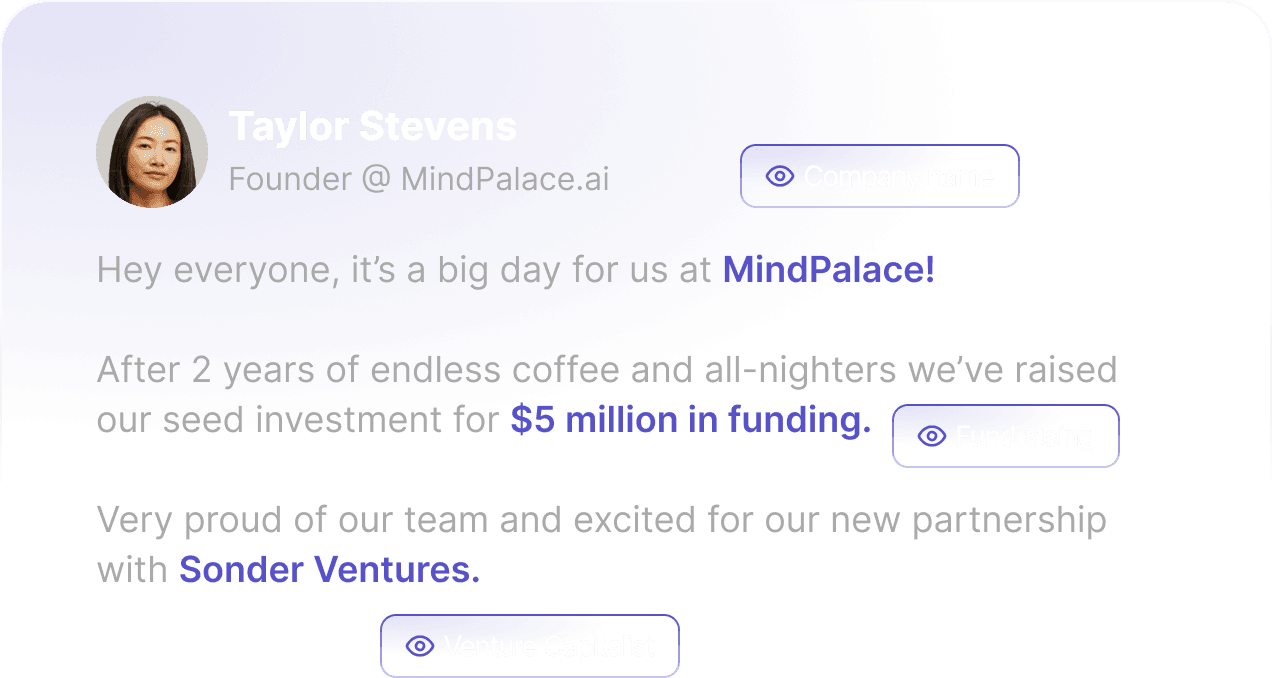 Use this information to deepen your understanding of a prospect, candidate or founder and personalize your outreach.
