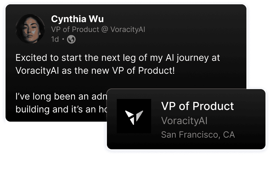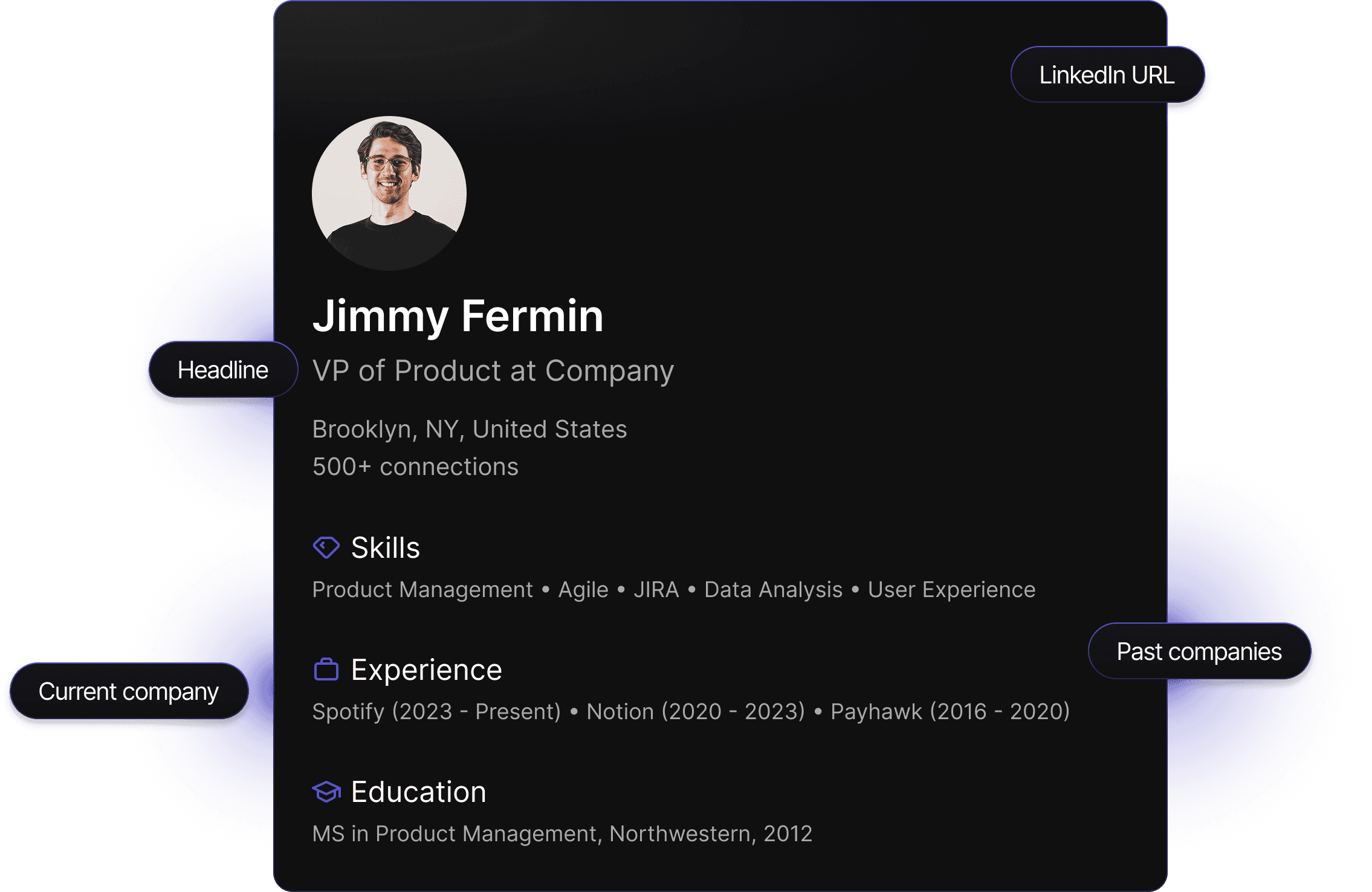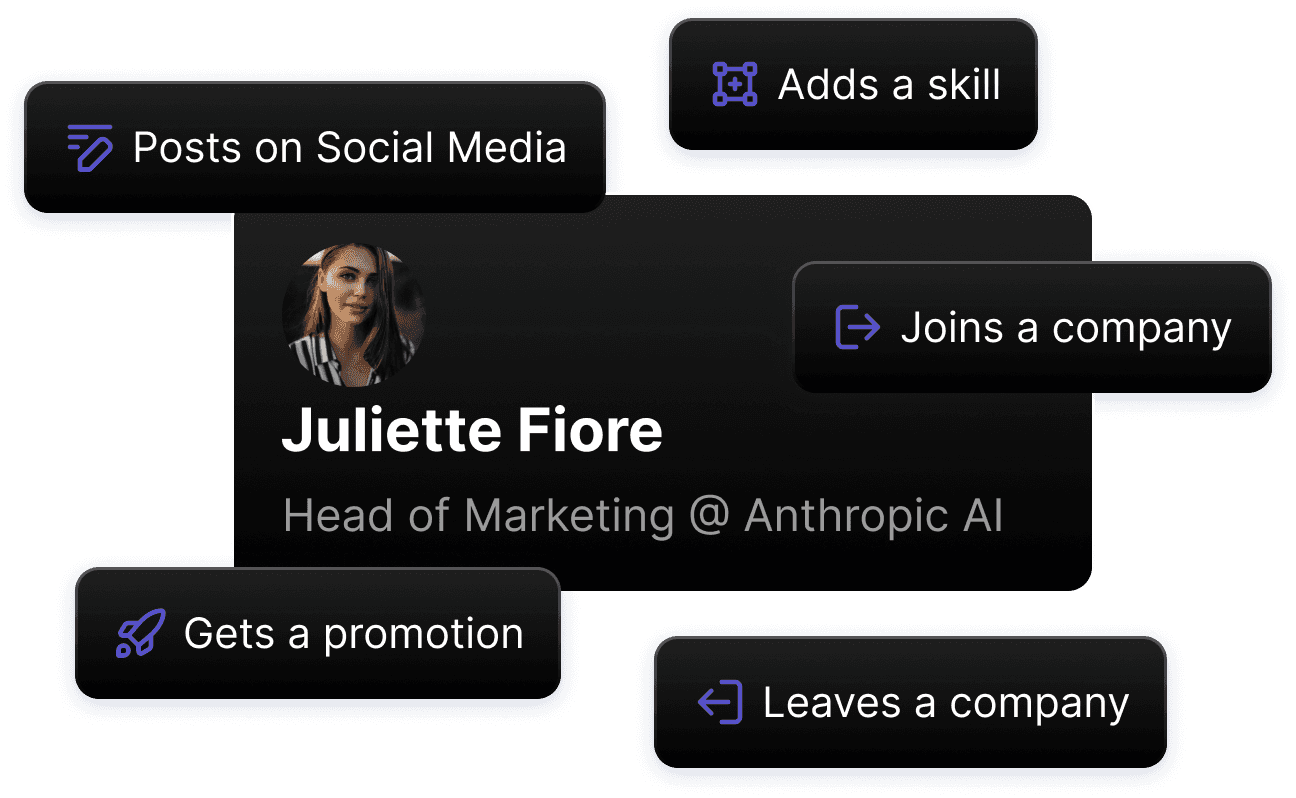 Other providers often miss key details like job start dates or job role descriptions. We give you complete, structured profiles with 95+ datapoints per person, so you get a complete insight into the people who matter without having to stitch together fragmented data sources.