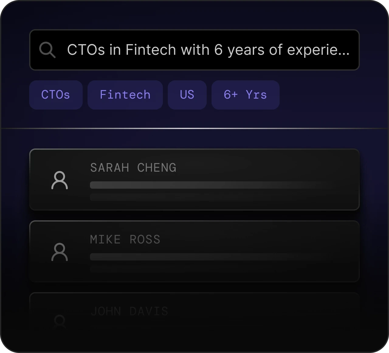 Whether you run retained searches, a boutique vertical practice, or an in-house exec talent team the workflow is the same. The data does the heavy lifting.