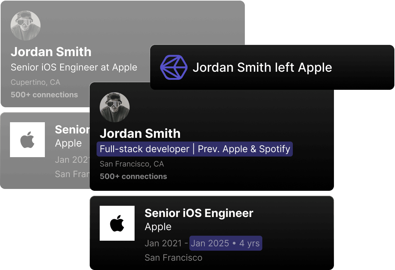 With Crustdata’s live signals, you can monitor when employees leave and when new roles are created at target companies.