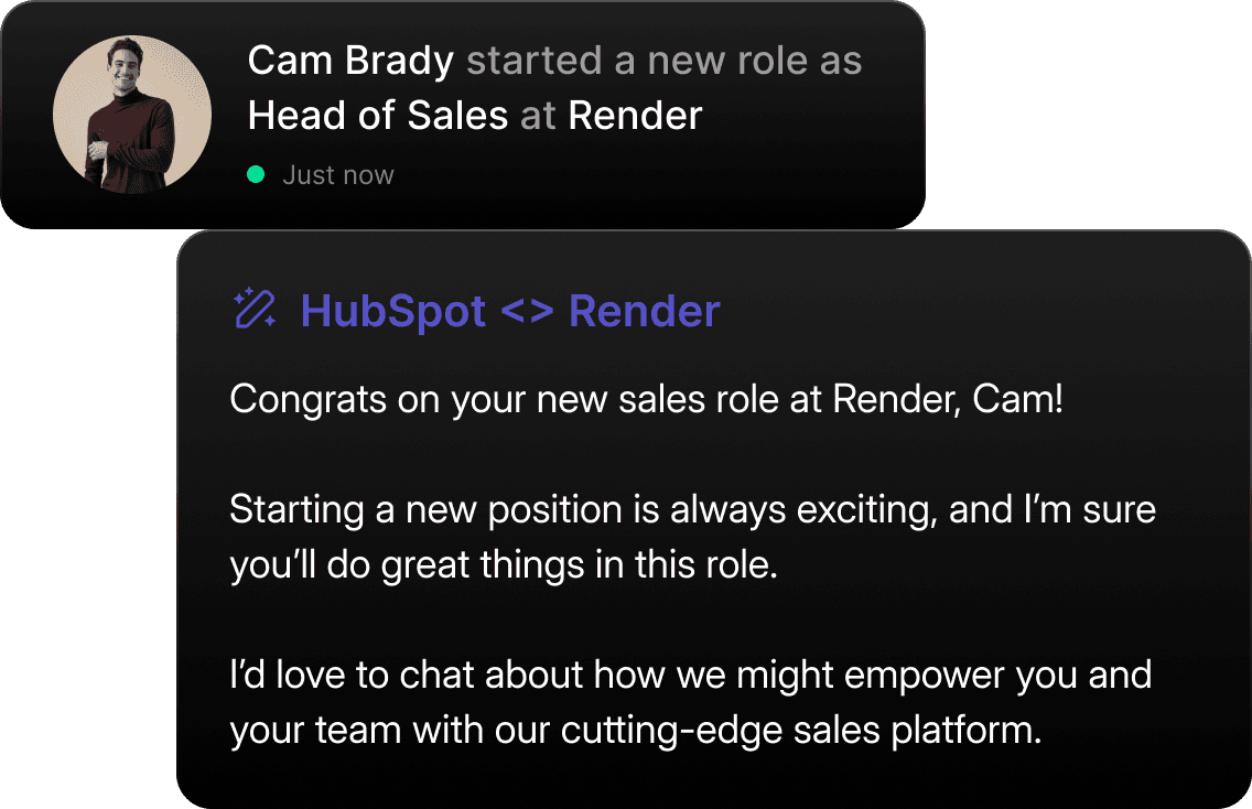 Trigger follow-ups with real-time signals and Craft personalized messages that speak directly to each prospect’s current activities.