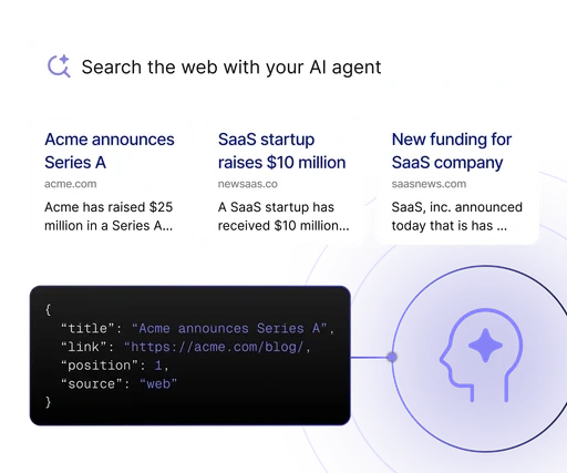Crustdata’s Web Search API converts live web search results into structured, machine-readable JSON. Instead of scraping result pages and parsing HTML, your systems receive normalized data including titles, URLs, snippets, ranking position, result type, and source.